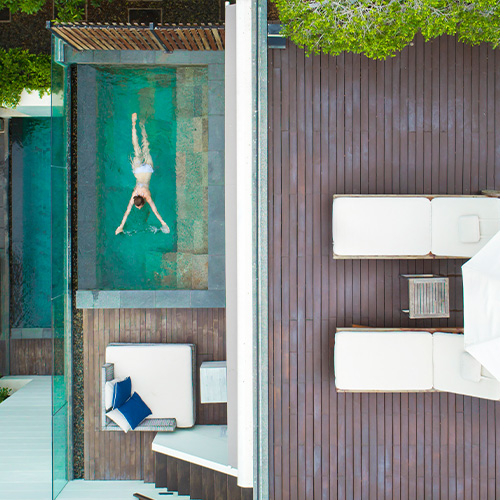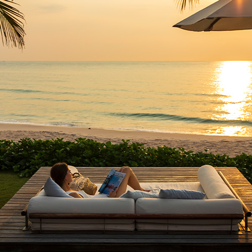Opportunities for indulgent relaxation abound around the pool, on the glorious sandy beach that stretches away in both directions or in the sumptuous comfort of its suites. These are offered in a range of styles with the supreme comfort of extra-large beds, an opulent bathroom and its exclusive plunge pool. The top of the range Nidhrarom Suite exudes a modern design and the decadent opportunity of relaxation in true privacy with luxury in-room amenities to accommodate every need and its own exclusive 14-metre-long swimming pool (size 2.70 x 14.00 m; depth 1.10 m) a stylish sundeck with stunning sky and sea views plus outdoor and indoor enclaves.