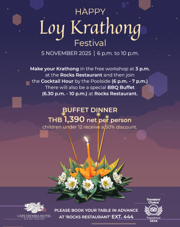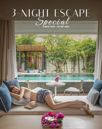 True 5-star luxury is a dream come true. Cape Nidhra Hotel is part of the prestigious Cape Hotel Collection and here is where memories are made and dreams are born. The stunning location of the Royal Resort town of Hua Hin, a comfortable drive from Bangkok or Suvarnabhumi Airport in the hotel’s limousine, is an added bonus. There is excellent access to the town’s night market, other local markets and shopping centres. The hotel can arrange day trips to a range of local landmarks, coastal viewpoints and spectacular inland waterfalls. Further south there are national parks where native trees and wildlife can still be seen in natural surroundings of forested hillsides and splashing waterfalls. The region’s fashionable vineyards are similarly a sought-after destination.