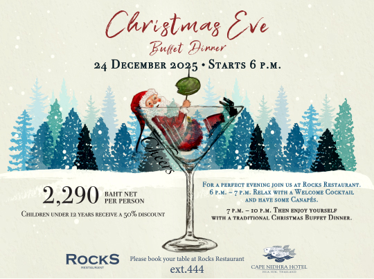 7 p.m. – 10 p.m. Then enjoy yourself with a traditional Christmas Buffet Dinner.